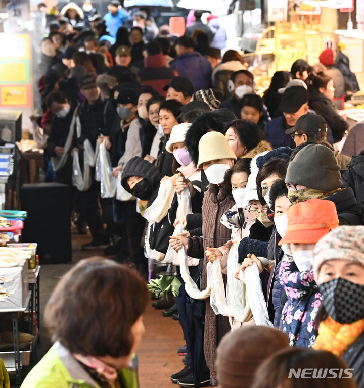 by: Posted on: 2024년 01월 17일 무병장수를 기원하며 [뉴시스Pic] [서울·수원=뉴시스] 류현주 김종택 기자 = 17일 경기도 수원시 팔달구 못골시장에서 열린 ‘못골시장과 함께하는 가래떡 나눔 행사’에 참석한 시장상인과 시민들이 180m 길이의 가래떡을 이어 잡는 퍼포먼스를 하고 있다. 새해를 맞아 무병장수를 기원하며 긴 가래떡을 뽑는 가래떡 나눔은 못골시장의 대표 행사다. ◎공감언론 뉴시스 ryuhj@newsis.com, jtk@newsis.com Post Views: 29
