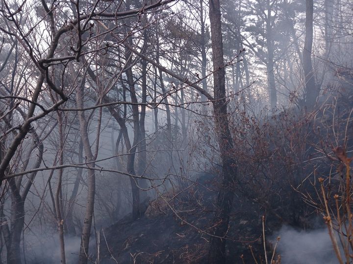 [부산=뉴시스]이동민 기자 = 30일 오전 5시 49분께 부산 사하구 천마산 7부 능선에서 원인이 밝혀지지 않은 불이 났다.