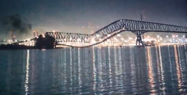 앞서 이날 아침(현지시각) 볼티모어항을 출항해 스리랑카로 향하던 컨테이너선 달리호가 출항 30분 만에 이 다리 교각과 충돌해 화재에 휩싸인 후 침몰했다. 컨테이너선 승무원들 가운데 인명 피해는 발생하지 않았지만, 교량이 무너지면서 다리 위를 달리던 차량 여러 대가 강으로 빠졌으며, 다리 위에 있던 최소 7명도 강물로 떨어졌다.
