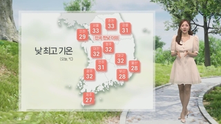 중부지방의 낮 최고기온은 서울 33도, 대전 32도로 어제보다 2, 3도가량 높겠습니다.