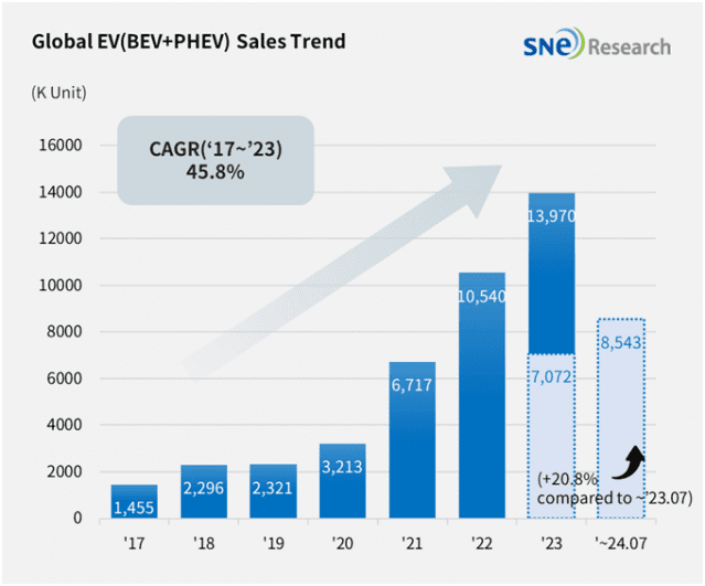 SNE리서치는 “중국산 전기차에 대한 미국과 유럽의 견제는 갈수록 거세지고 있다”며 “유럽연합(EU)은 오는 11월부터 중국에서 생산된 전기차에 대해 최고 46.3%의 관세율을 부과할 계획”이라고 짚었다.