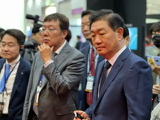 한 부회장은 행사 직후 KES 2024 전시를 관람했다. 대내외적으로 위기론이 대두되고 있는 회사 상황에 대한 취재진의 질문에는 말을 아꼈다.
