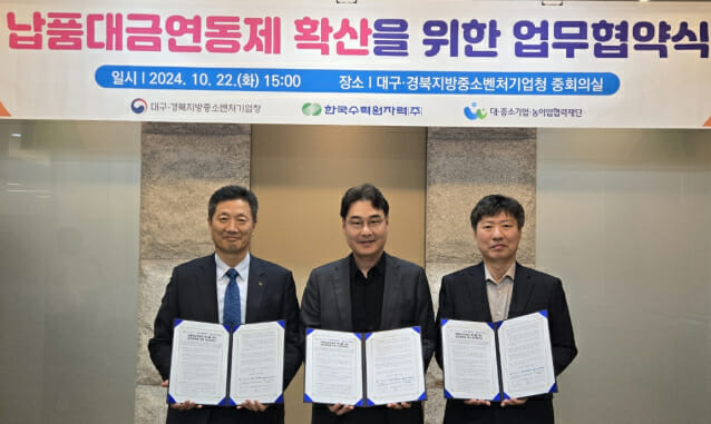 한국수력원자력(대표 황주호)은 22일 대구‧경북지방중소벤처기업청, 대·중소기업·농어업협력재단과 함께 납품대금 연동제 확산을 위한 업무협약을 체결했다.