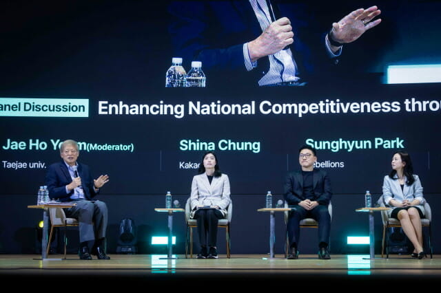 정신아 카카오 대표는 “정부가 자금을 지원하면 그 테두리 안에서 경쟁하며 발전하던 것은 모바일 시대의 모습이고, AI 시대에는 협력을 통해 하나의 그림을 보고 나아가야 한다”고 말했다.