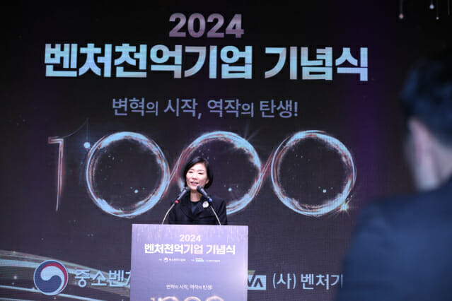 중소벤처기업부와 벤처기업협회(회장 성상엽)는 26일 엘타워 5층 오르체홀에서 2023년도 결산 기준 매출 1천억원을 달성한 ‘벤처천억기업’의 성과를 축하하고 벤처기업 위상을 홍보하기 위한 기념식을 개최했다.