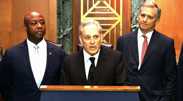 데이비드 삭스는 팀 스콧 상원 은행위원회 위원장, 존 부즈먼 상원 농업위원회 위원장, 프렌치 힐 하원 금융서비스위원회 위원장, G.T. 톰슨 하원 농업위원회 위원장과 함께 기자회견을 진행했다.