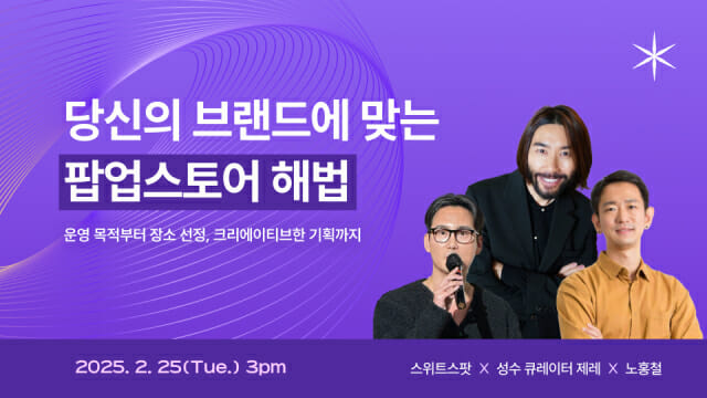 이어 성수동 로컬 매거진 ‘성수교과서’의 박진우(제레박) 대표가 2024년 국내 팝업스토어의 27%가 열렸던 성수 상권의 특성과 소비자 행동 패턴 분석을 기반으로 성수동에서 주목받는 팝업스토어의 핵심 포인트를 설명한다. 마지막 세션에서는 트래비스 매튜, 노루페인트 홍철 원더랜드 등을 기획한 이력이 있는 스위트스팟 크리에이티브 디렉터(CD) 노홍철이 고객 경험을 강화할 공간 구성 노하우를 소개한다.