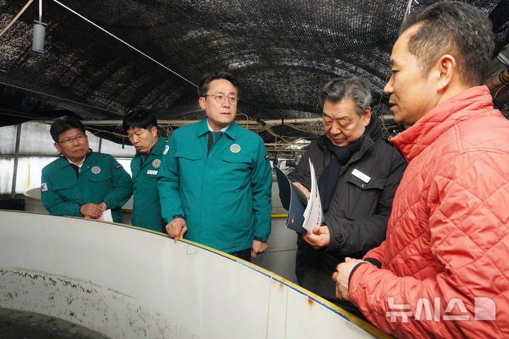 [서울=뉴시스] 박성환 기자 = 강도형 해양수산부 장관은 7일 충남 태안군에 있는 양식장을 찾아 저수온 발생 상황과 대비 실태를 긴급 점검했다.