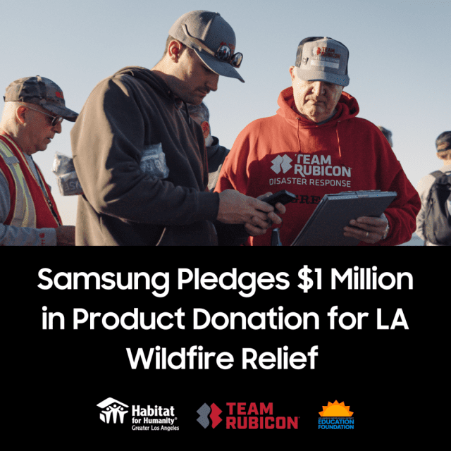7일 삼성전자 미국 뉴스룸에 따르면 삼성전자 미국법인과 삼성 반도체 법인이 ‘LA 그레이터 해비타트'(Habitat for Humanity of Greater LA), ‘팀 루비콘'(Team Rubicon), ‘LA 통합교육구 교육재단'(LAUSD Education Foundation) 등과 협력해 피해 지역 주민들을 위한 즉각적인 구호활동과 장기적인 복구 지원에 나선다.