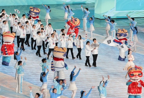 한국 선수단은 오늘(7일) 중국 하얼빈 국제 컨벤션 전시 스포츠센터에서 열린 대회 개회식에 전체 34개국 중 열세 번째로 입장했습니다.