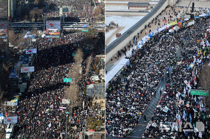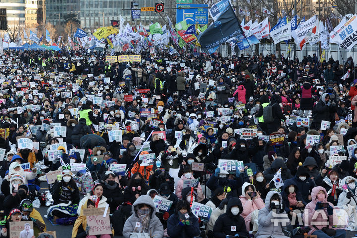 [서울=뉴시스]김명년 김금보 기자 = 영하 6도 한파에도 서울 도심 곳곳에서 윤석열 대통령 탄핵 찬반 집회가 열렸다