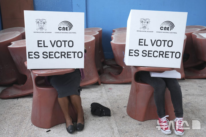 [과야킬(에콰도르)=AP/뉴시스] 유세진 기자 = 보수 성향의 에콰도르 대통령 다니엘 노보아와 좌파 변호사 루이사 곤살레스가 9일 총 16명이 출마한 대선 1차 투표에서 승패를 가리기 힘들 박빙의 차이로 1, 2위에 올라 4월13일로 예정된 결선투표에 진출했다.