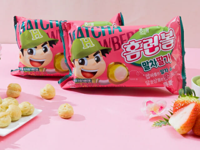 회사의 신제품 '홈런볼 말차딸기'.(사진=해태제과)