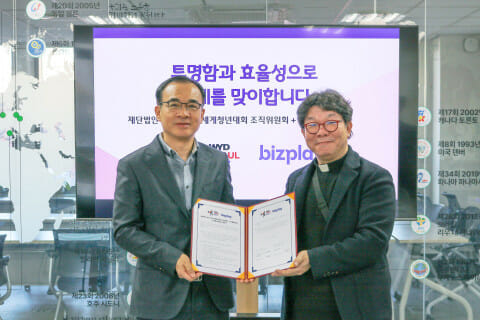 비즈플레이가 ‘2027 서울 세계청년대회 조직위원회’와 업무협약을 체결하고 경비지출관리 솔루션을 무상 지원하기로 했다. 이를 통해 행사 준비 과정에서 비용 관리의 효율성과 투명성을 높일 계획이다.