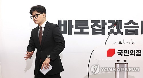 (서울=연합뉴스) 김주형 기자 = 국민의힘 한동훈 대표가 지난해 12월 16일 오전 국회에서 열린 기자회견에서 당 대표직 사퇴 입장을 밝힌 뒤 이동하고 있다. 2024.12.16 kjhpress@yna.co.kr