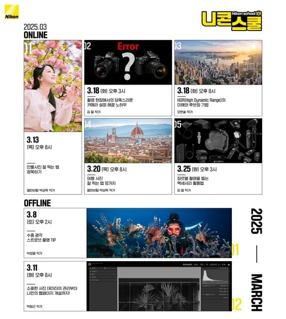 니콘이미징코리아 2025년 3월 니콘스쿨 커리큘럼.