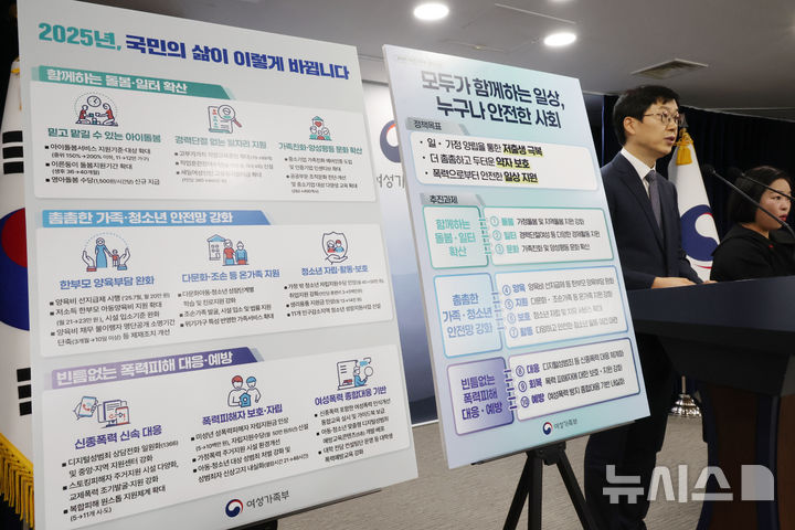 올해 여가부의 3대 핵심 과제는 ▲아이돌봄서비스 체계 개편 ▲한부모가족 양육비 선지급제 시행 ▲딥페이크 성범죄 범정부 대책 이행 등이다.