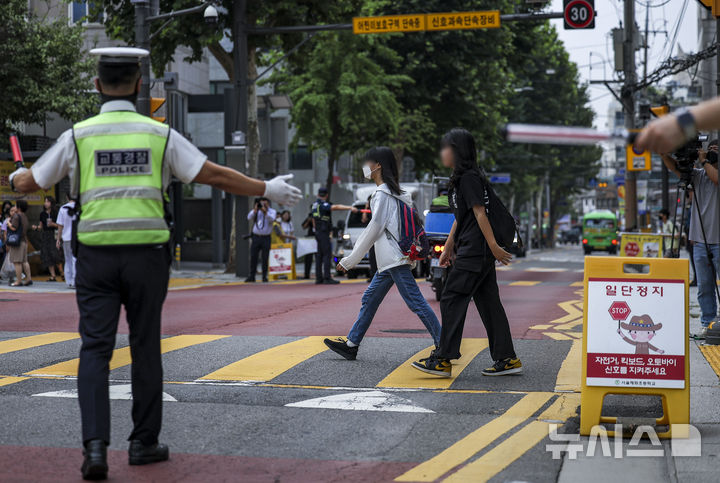 [서울=뉴시스] 김남희 기자 = 어린이보호구역(스쿨존) 내 어린이 교통사고가 3~5월 가장 많이 발생하는 것으로 나타났다. 경찰청은 개학철을 맞아 스쿨존 내 교통안전시설 일괄 점검에 나선다.