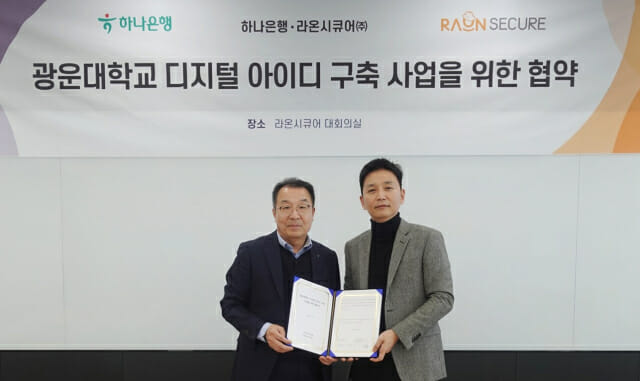보안·인증 플랫폼 기업 라온시큐어(대표 이순형, 이정아, 042510)는 지난 20일 서울 여의도 본사에서 하나은행과 ‘광운대학교 디지털 아이디 구축 사업을 위한 업무협약’을 체결했다고 밝혔다.