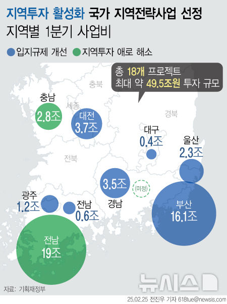 정부는 이번 대책을 통해 지원할 18건의 프로젝트가 향후 총 49조5000억원 규모의 투자 이행 효과를 낼 것으로 기대하고 있다.