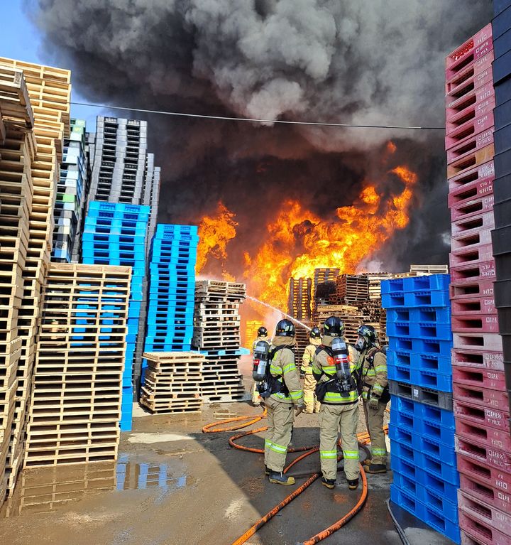 화재는 야적장 내 비치된 파레트 더미에서 처음 발생한 것으로 알려졌다.