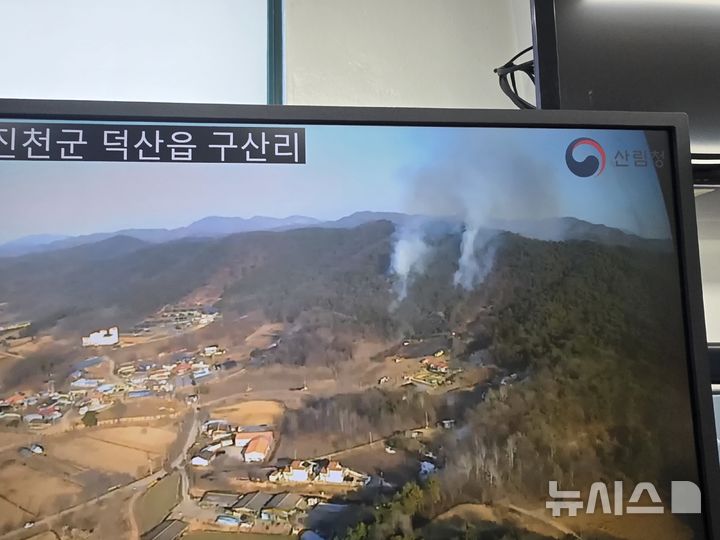[진천=뉴시스] 서주영 기자 = 26일 오후 4시25분께 충북 진천군 덕산읍 구산리의 한 야산에서 불이 났다.