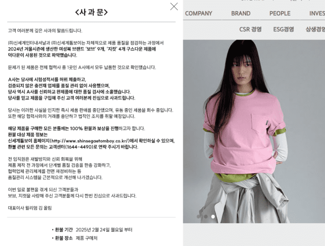신세계그룹 계열사 판매 제품에 대한 논란이 계속되고 있다. 기업에 대한 신뢰도까지 떨어질 수밖에 없다는 비판이 나온다. 회사는 환불 조치를 비롯해, 품질 관리와 검수 체계를 강화하겠다며 고개를 숙였다.