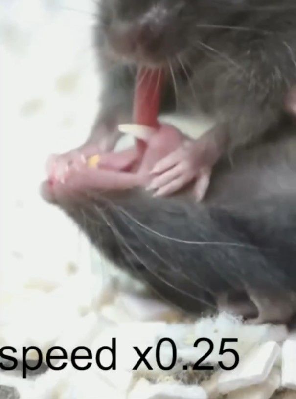 또 움직이지 않는 쥐의 혀를 지속적으로 잡아당기거나 머리로 미는 모습이 관찰되기도 했다.