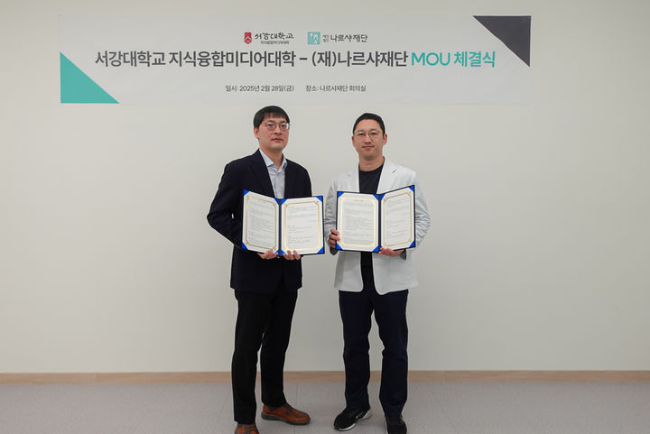 이날 협약식에는 서강대 지식융합미디어대학 정수린 교수와 나르샤재단 이동기 이사장이 참석했다.