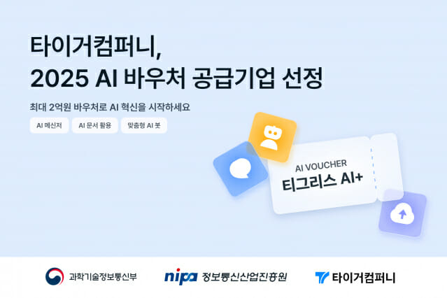 타이거컴퍼니가 과학기술정보통신부와 정보통신산업진흥원이 주관하는 AI 바우처 지원사업의 공급기업으로 선정됐다. 이를 통해 중소·중견기업과 소상공인은 최대 2억원 상당의 바우처를 활용해 AI 솔루션을 도입할 수 있다.