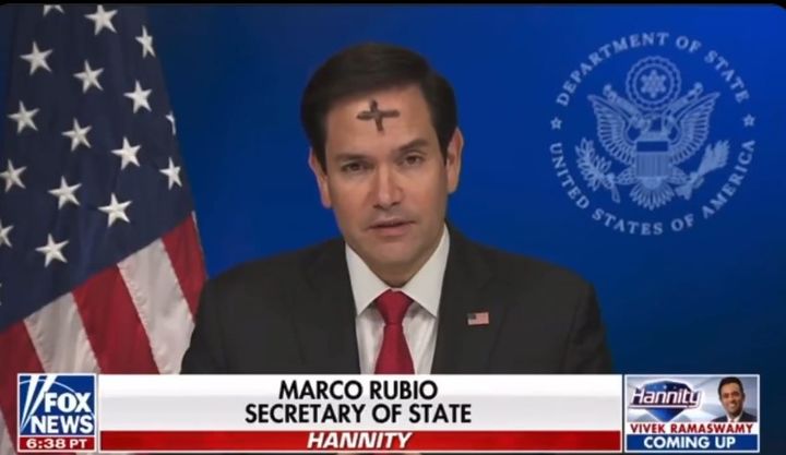 [서울=뉴시스] 구자룡 기자 = 마코 루비오 미국 국무장관이 이마에 재로 십자가를 새긴채 방송에 출연해 논란이 된 사순절(四旬節·Lent)은 부활절을 앞둔 약 40일간의 기간이다.