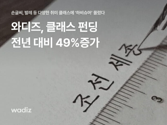 와디즈 관계자는 “최근 본인의 취향을 찾고 투자하는 데 가치를 두는 소비자가 늘면서 와디즈에서 독특한 취미나 자기계발 관련 클래스에 대한 관심이 높아지고 있다”며 “호응에 힘입어 올해 역시 전문성과 두터운 팬층을 갖춘 다양한 전문가들의 클래스가 준비되어 있으며 와디즈는 앞으로도 새로움을 찾는 서포터들의 니즈를 충족시키고 일상에 특별함을 더할 수 있는 클래스를 적극적으로 선보일 계획”이라고 말했다.