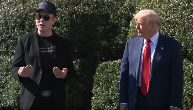 머스크는 “테슬라 차량이 다 비싼 게 아니다. 테슬라는 3만5천 달러면 살 수 있다”며, “대통령의 지원에 감사한다. 정말 큰 의미가 있다”고 밝혔다. 이에 트럼프 대통령은 대통령 신분으로 차를 운전할 수 없다면서도 새로 구매한 테슬라 차를 “백악관에 두고 직원들이 사용하게 할 것”이라고 밝히며 지지했다.