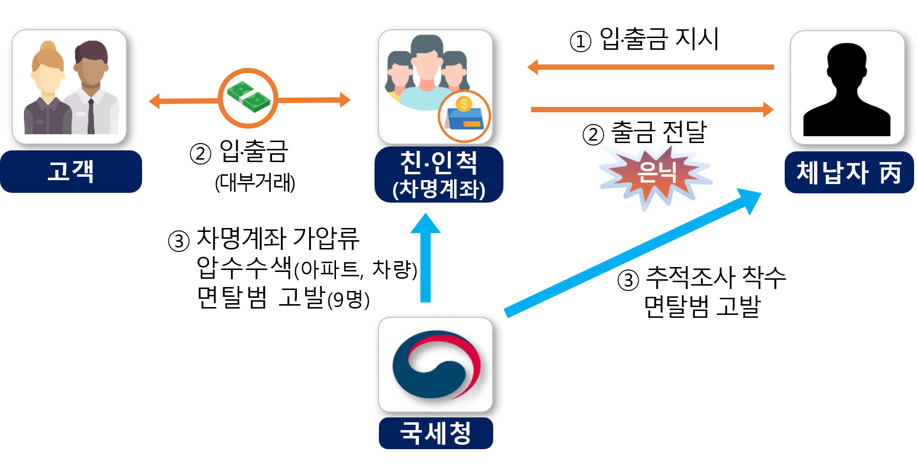 국세청은 고액의 세금을 체납한 후 차명계좌를 이용해 불법 대부업을 운영한 C씨를 적발했습니다.