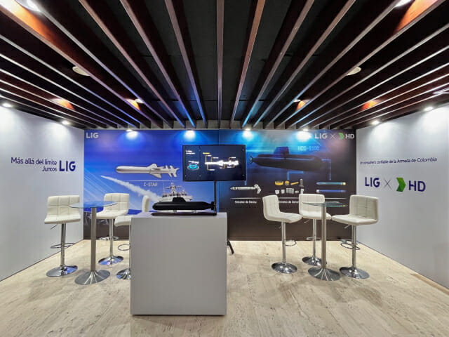 LIG넥스원은 함대함 유도무기 ‘해성’, 경어뢰 ‘청상어’ 등 해양유도무기를 비롯해, 중남미 시장 확대를 위해 HD현대중공업과 공동 프로모션을 진행한다. 콜롬비아 한국전 참전용사와 가족을 초청해 격려 행사도 연다.
