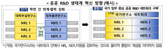 특히, 중장기적으로 (가칭) 국가연구소 네트워크 구축이 눈길을 끈다. 국가 임무 중심 공공 R&D 네트워크 구축이 핵심이다. 대학 연구소와 개방형 출연연 협력체계 간 긴밀한 협력으로 공공 R&D를 강화할 방침이다.
