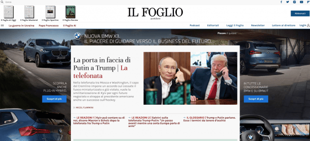 화제의 주인공은 이탈리아 일간지 ‘일 포글리오(Il Foglio)’다. 일 포글리오는 18일(현지시간) ‘인간 기자’ 개입 없이 인공지능(AI)만으로 만든 신문을 선보였다. 기사 본문 뿐 아니라 제목, 인용, 기사 앞부분 요약까지 모두 AI로 작성했다.