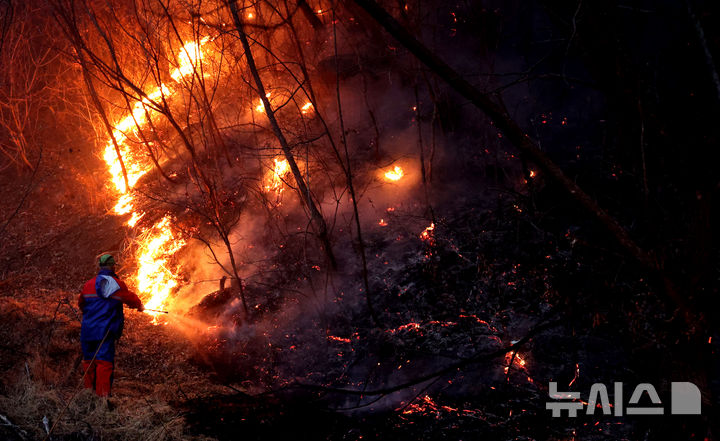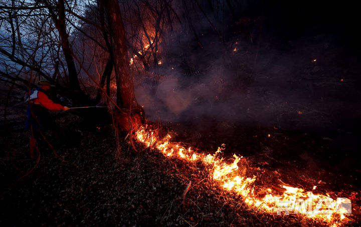 [서울=뉴시스]고범준 이무열 이은희 기자 = 경북 의성 산불 이틀째인 23일 진화율 60%를 넘긴 가운데 산림 당국이 야간 진화 작업체제로 전환했다.