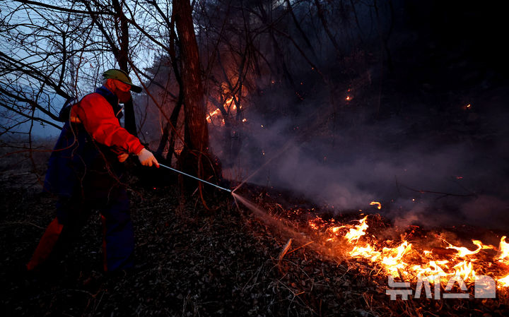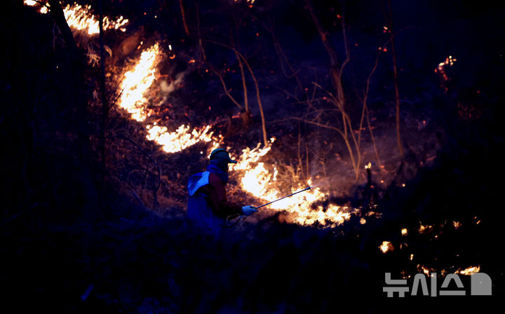 의성 산불, 헬기 철수 후 이틀째 야간 진화 [뉴시스Pic]