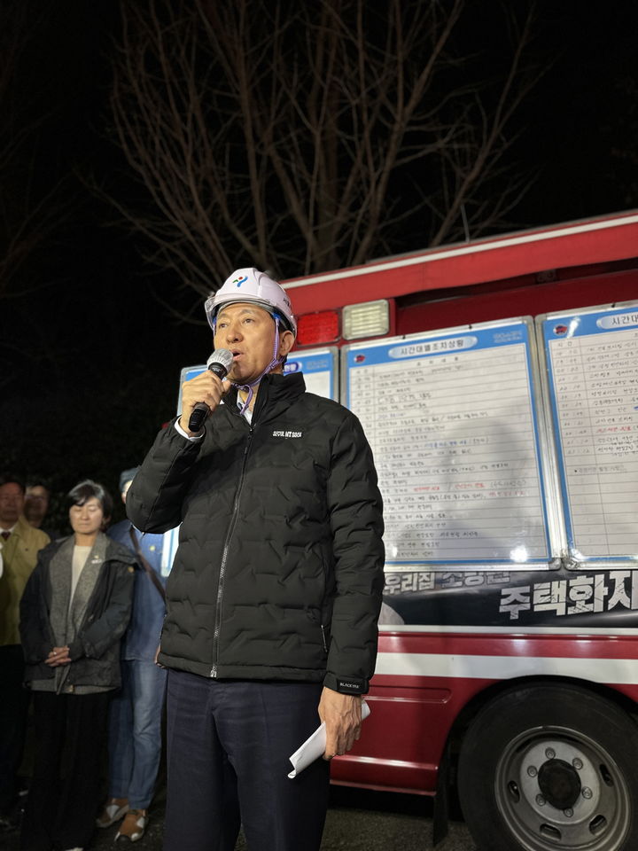 오 시장은 이날 오후 9시20분께 강동구 명일동 216-9(대명초교사거리) 땅 꺼짐 현장을 찾았다. 그는 이날 오후 6시32분께 사고 발생 직후부터 상황을 보고 받다가 직접 현장을 찾았다.