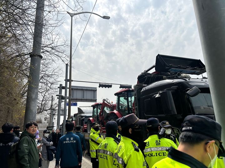 당초 법원은 전농 측의 상경 시위와 관련해 트랙터의 서울 진입은 불허하고 트럭은 진입 대수를 20대로 제한했다. 경찰은 트랙터 1~2대씩 실은 화물차들이 속속 서울 진입을 시도하자 안전 관리에 나서고 있다.
