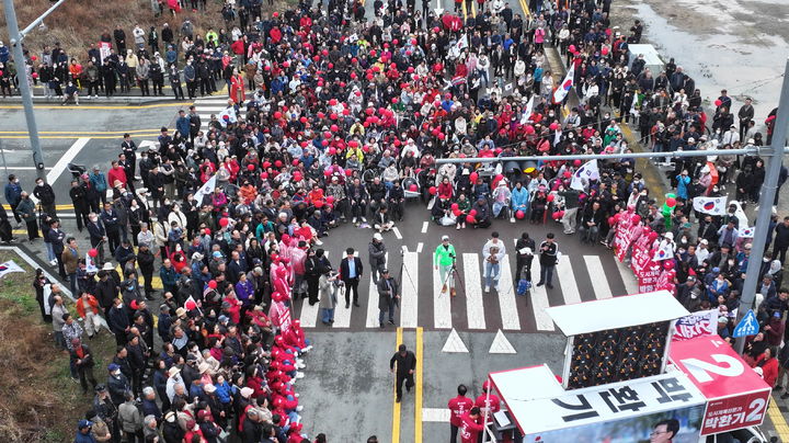 전한길 강사는 “4월 2일 국민의힘 박환기 후보를 당선시켜 놓고 막걸리를 마시든 맥주를 마시든 하자”고 지지자들을 독려하고 응원했다.