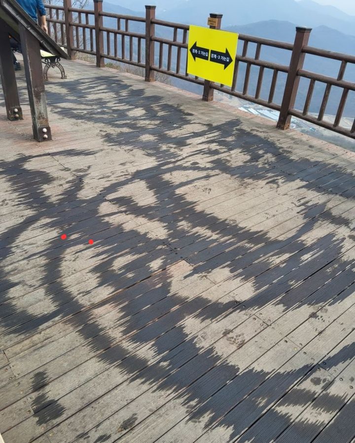 27일 화성서부경찰서 등에 따르면 이날 오후 2시10분께 태행산 정상 데크에 폐오일이 뿌려진 채 발견됐다. 이곳에서는 물질이 담겨있던 통도 놓여져 있던 것으로 알려졌다.