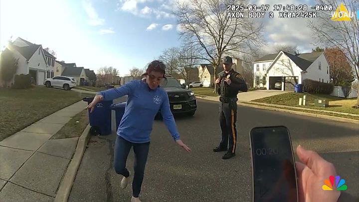[서울=뉴시스]허나우 인턴 기자 = 뉴저지 럼버튼 타운십의 지나 라플라카 시장이 세인트 패트릭 데이에 어린 아들을 태우고 음주 운전을 한 혐의로 체포됐다. 최근 공개된 경찰 바디 카메라 영상에는 그녀가 균형을 잃고 비틀거리는 모습이 포착됐다.