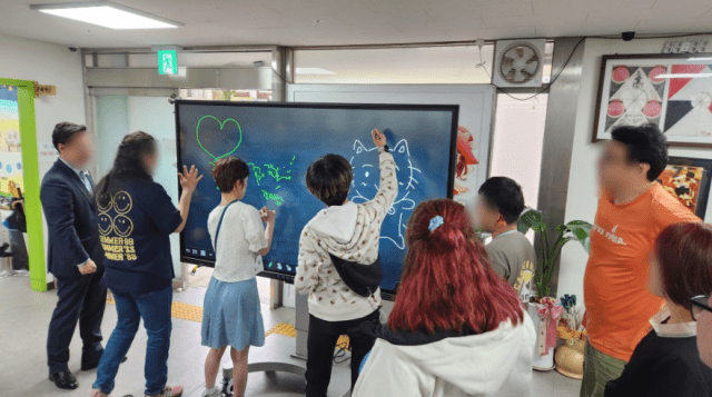 두드림장애인학교 학생들이 현대전자칠판을 이용하고 있다. (사진=현대아이티)