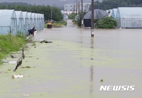 [장성=뉴시스]이영주 기자 = 30일 오전 0시48분께 전남 장성군 삼계면에서 비닐하우스가 물에 잠겼다는 신고가 소방당국에 접수됐다.