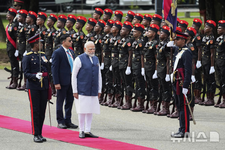 [서울=뉴시스]신정원 기자 = 나렌드라 모디 인도 총리가 5일 국방 및 에너지 분야 등 협력을 강화하기 위해 스리랑카를 공식 방문했다고 타임스오브인디아 등이 보도했다.