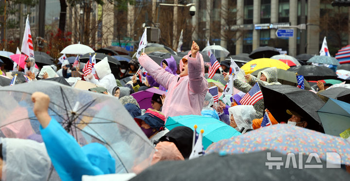 광화문 앞 동화면세점부터 시작한 시위 행렬은 서울시청 앞까지 늘어섰다. 집회 참가자는 빗속에서 한 손에는 우산을, 다른 손에는 태극기와 성조기를 들고 흔들기도 했다.