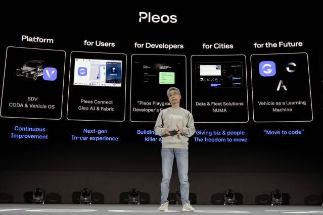 현대차그룹은 송창현 첨단플랫폼(AVP) 본부장이 직접 진두지휘해 구글 안드로이드오토모티브를 기반으로 만든 ‘플레오스 비히클 운영체제(OS)’와 ‘플레오스 커넥티비티’를 개발하고 있다. 모든 개발은 그룹 소프트웨어(SW) 계열사 포티투닷이 진행하고 있다.