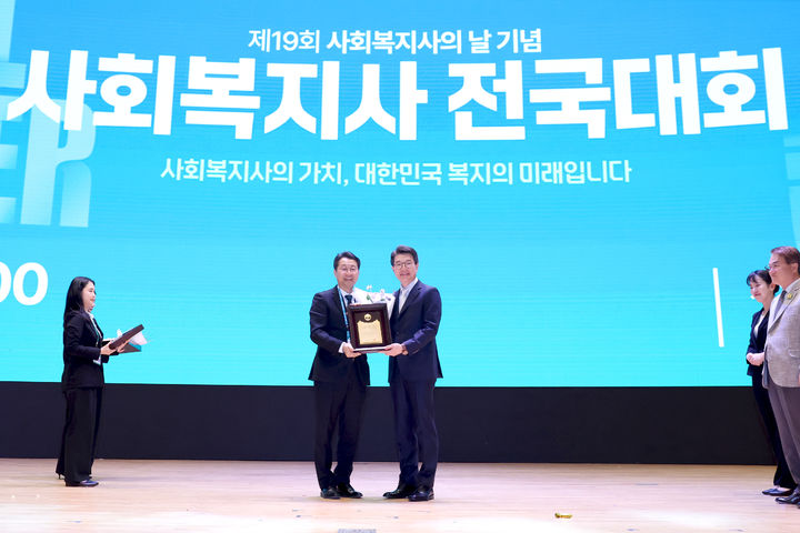 [서울=뉴시스] 고가혜 기자 = 정원오 서울 성동구청장이 한국사회복지사협회 주관으로 열린 ‘제19회 사회복지사의 날’ 기념 ‘지방자치복지대상’에서 기초자치단체장 부분 대상을 수상했다고 15일 밝혔다.